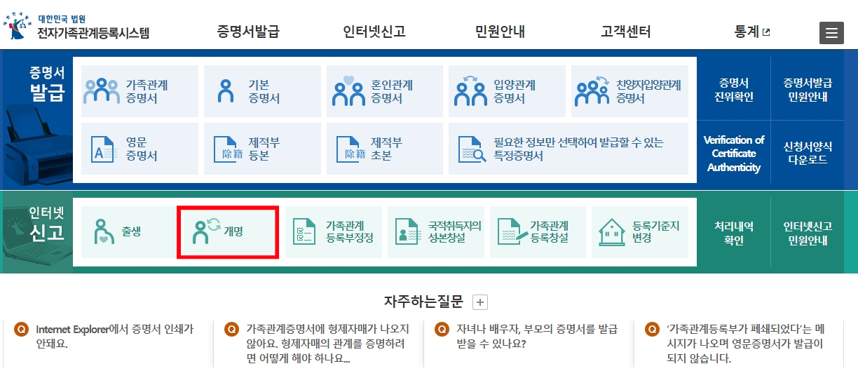 직접 구청,시청 방문하지 않고도 인터넷 "전자가족관계등록시스템"에서 하실수 있습니다.