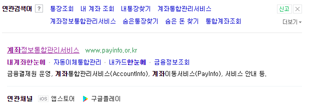 그럼 조회 하는 방법을 하나씩 확인해보겠습니다!! 먼저 포탈에 "계좌정보통합관리스" 또는 "내 계좌 조회"라고 검색하면 아래와같이 싸이트가 나옵니다.