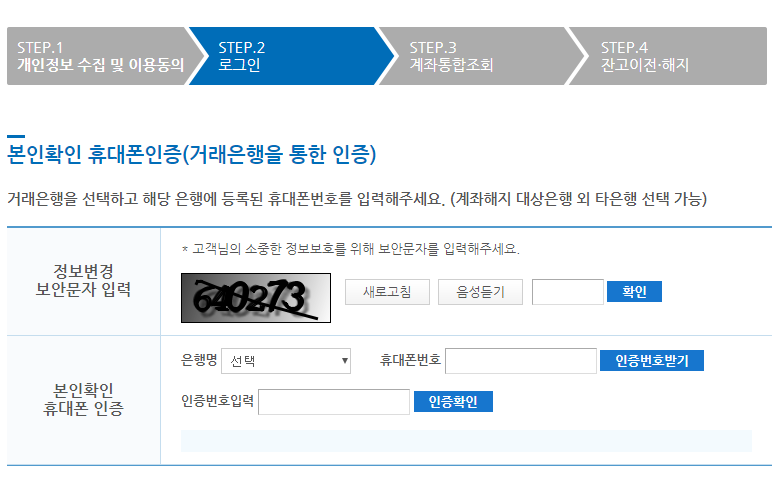 두번째로는 가지고 있는 은행사와 핸드폰 인증을 해야 됩니다.
