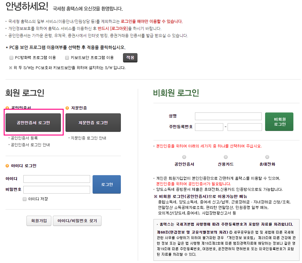 홈텍스 이용에 빠질수 없는 절차죠!