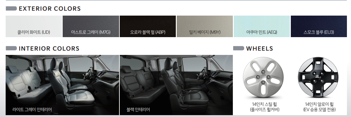 4. 기아 레이 EV 차량 색상 및 바퀴 휠 옵션