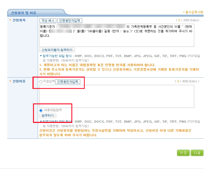 현재 이름 먼저 입력하시고 개명할 이름 입력해주시면됩니다.