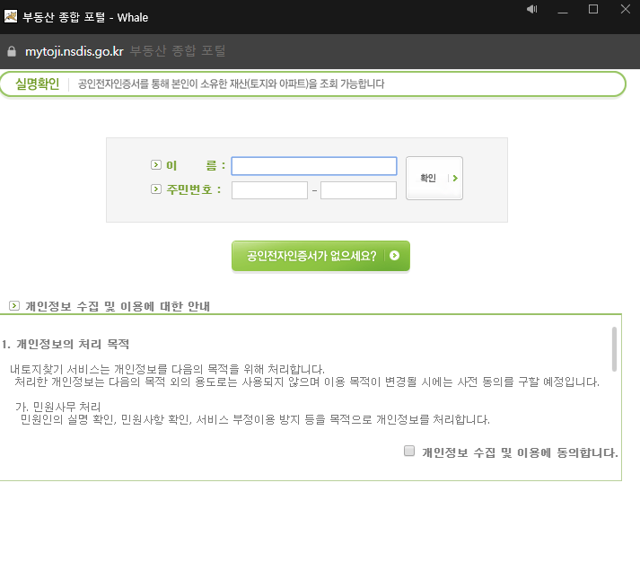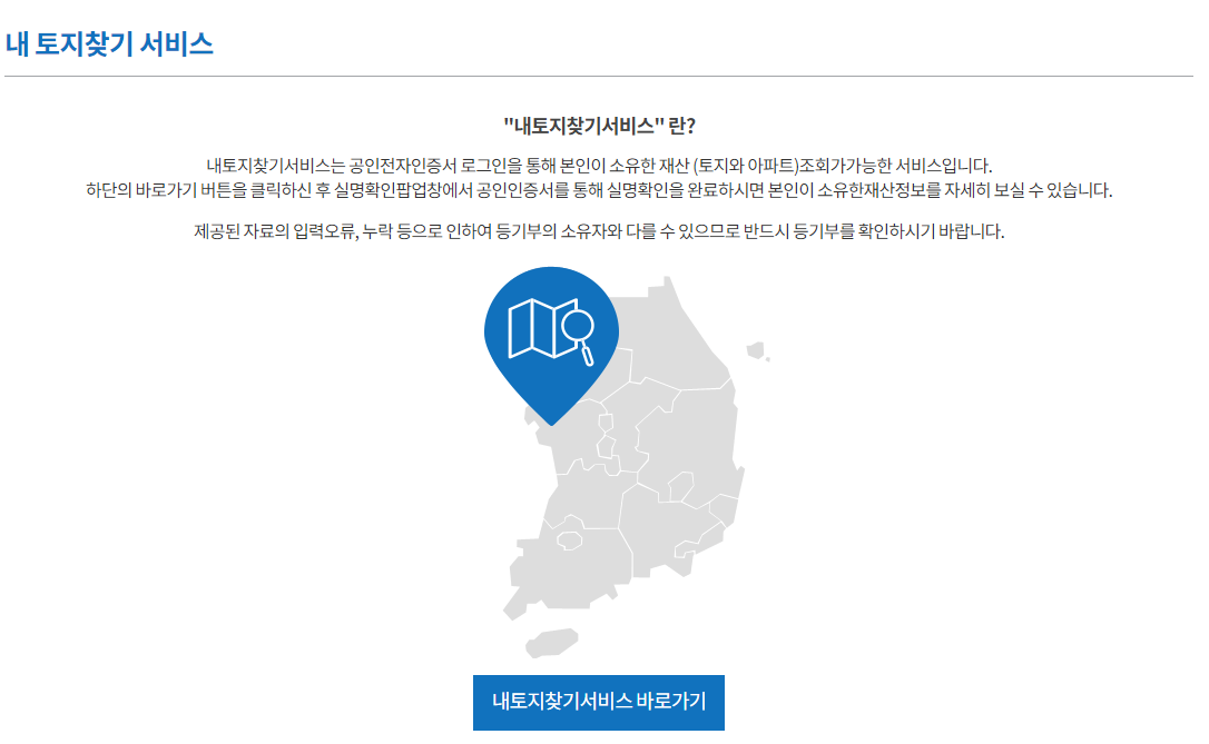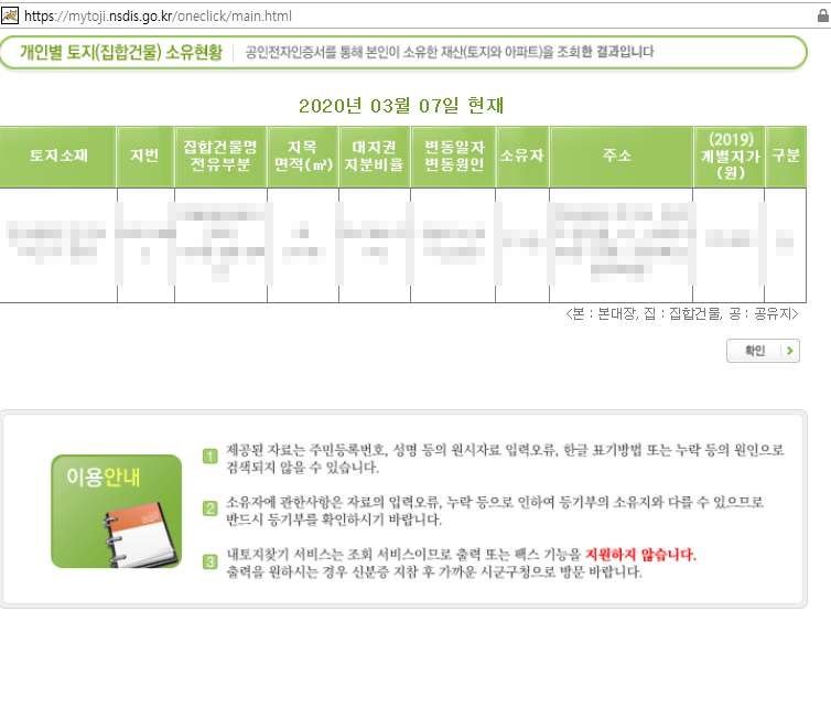 간혹 오류가 나서 내명의의 토지를 확인이 안되는 경우도 있지만 제가 이때가 해본결과 100번중에 1번이였습니다.