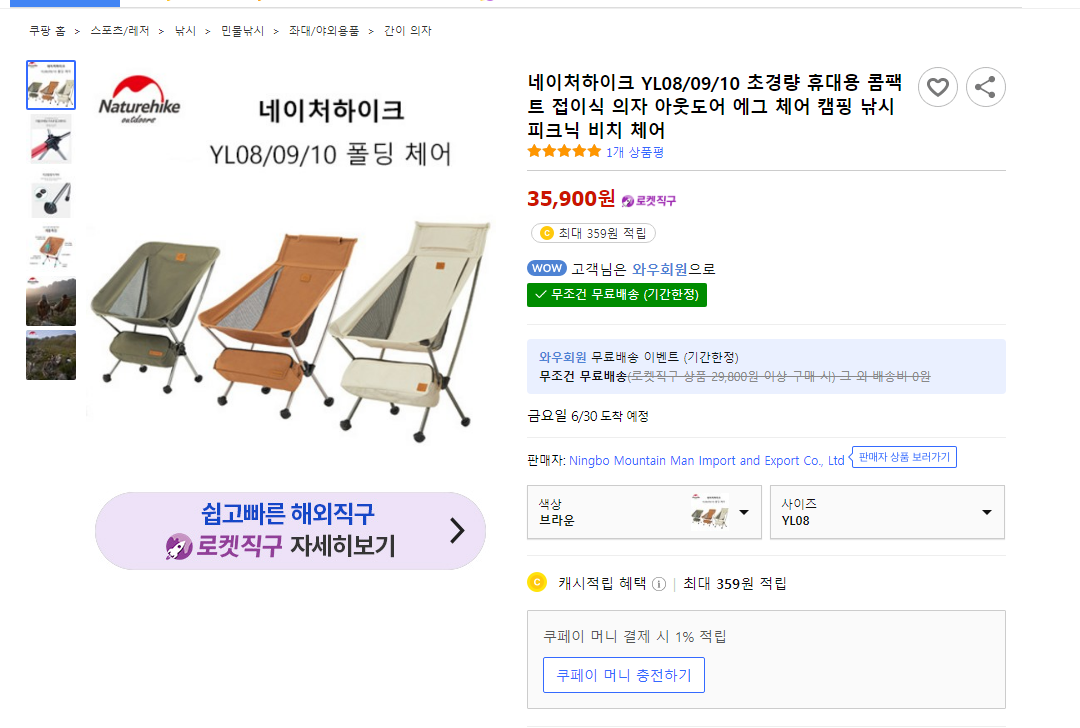 다양한 의자가 있지만 그중에서 네이처하이크 경량체어 yl08가 제가본 의자랑 비슷한거 같아서 구매해보기로 하였습니다.