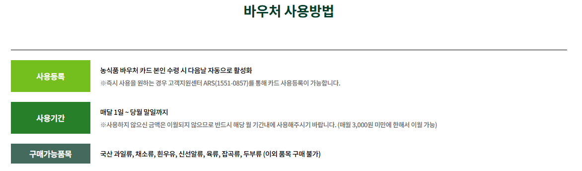 - 온라인: 농식품바우처 공식 지정 쇼핑몰