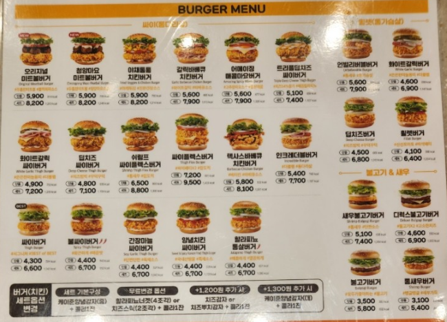 이왕 온김에 맘스터치 메뉴판도 저정해둡니다.