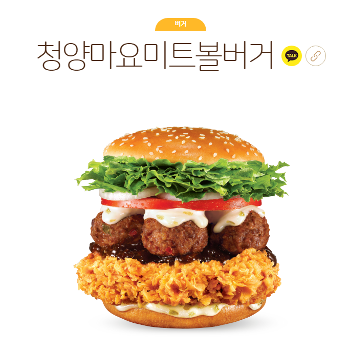 메뉴 이름은 "청양마요 미트볼버거" 입니다.