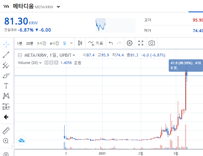 3월10일 현재98%까지 상승했다가 안정세를 찾고 있습니다.
