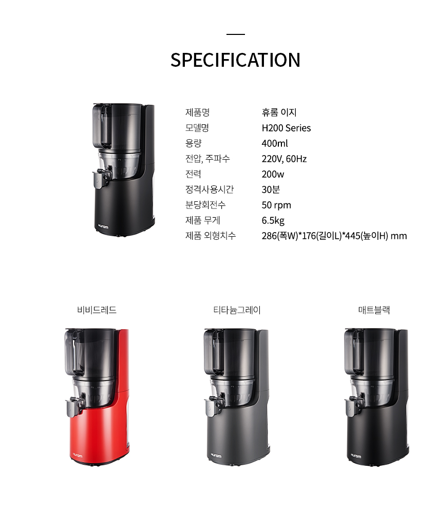 방송에 나온 제품은 휴롬 착즙기 H200 이네요