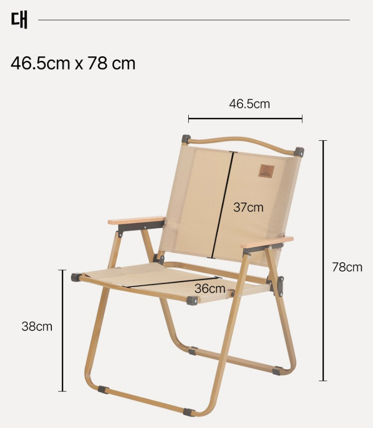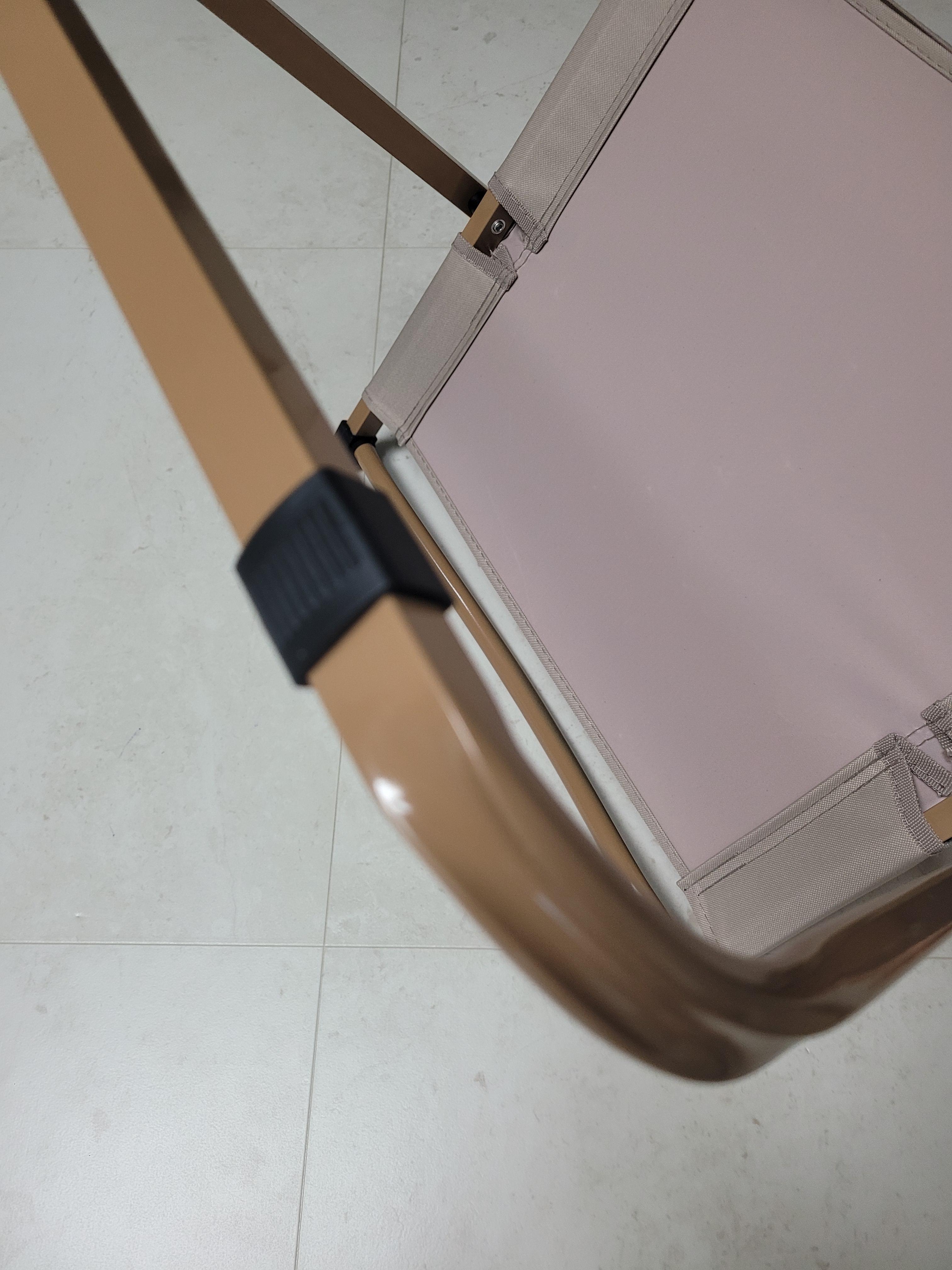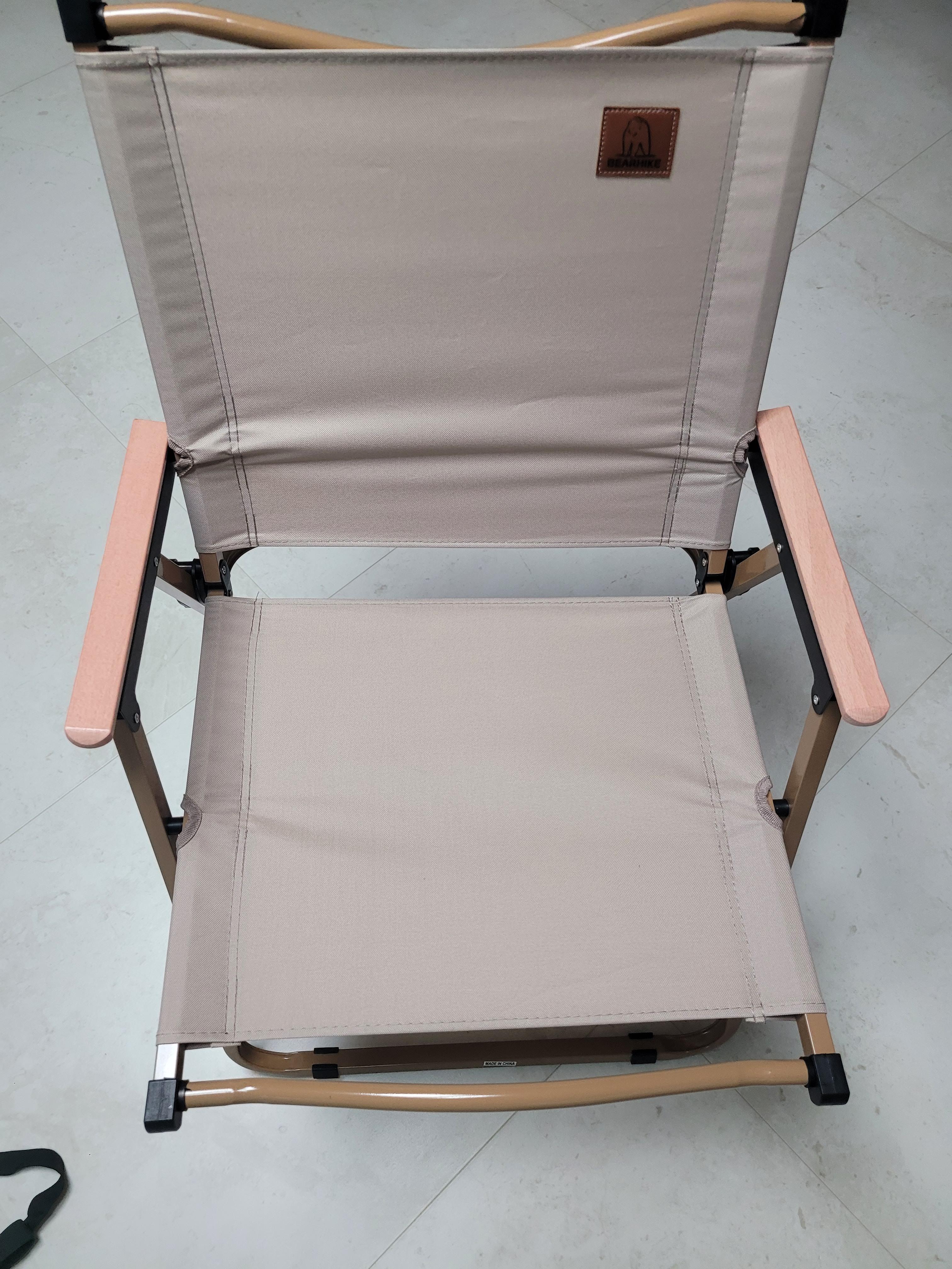 접이식 캠핑의자에 등받이 부분에 브랜드로고가 박음질되어 있으며, 팔걸이는 나무로 되어있는데 플라스틱 같은 나무이고, 이음세 부분 플라스틱과 철로 되어있어서 내구성에 문제가 없을까 하는 고민이 들었습니다. 하지만 가성비를 보고 산 것이기 때문에 그것까지 바라는 것은 양심이 없는 거겠죠
