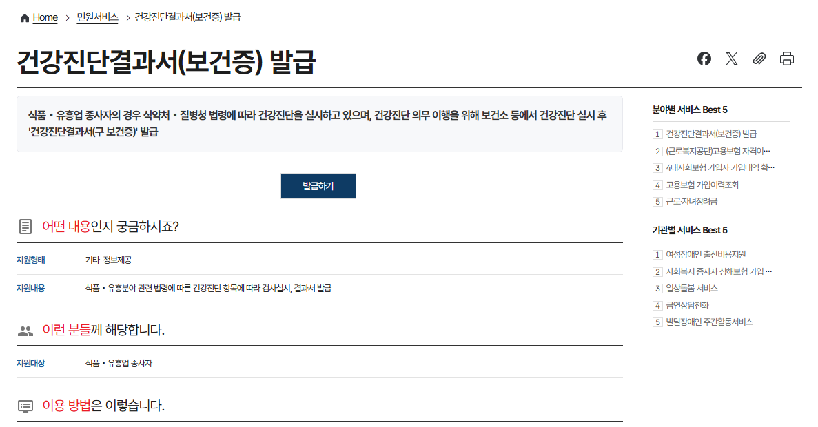 • 보건증 발급 방법: 온라인/현장 발급 가능 여부를 확인해야 합니다