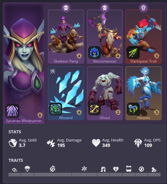 실바나스 윈드러너는 언데드 유닛으로 원거리 딜러에 하나에 유닛을 공객하는 미니입니다. 특성으로는 벤시를 소환하며, 리더 능력으로는 주위에 있는 모든 언데드 유닛의 이동속도롤 30%로 증가 시켜줍니다. 특성으로 가장 인기 있는 특성이 블랙 에로우 인데 화살을 일렬로 발싸하여 그안에 있는 모든 미니에게 원소피해를 줍니다. 단일 타겟 유닉이지만 특성을 얻게 되면 범위 원거리 딜러가 되기 때문에 좋은 스킬입니다. 아직 저도 사용 해보지 못했서 감이 없지만 기술 설명으로는 매우 좋아보이네요.