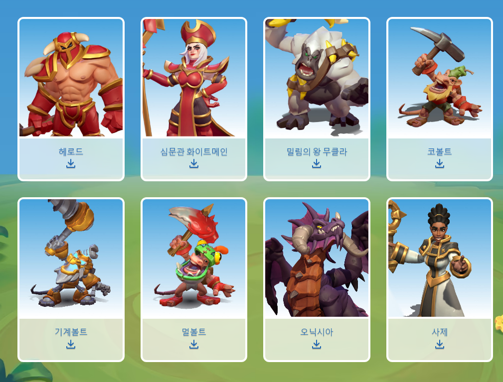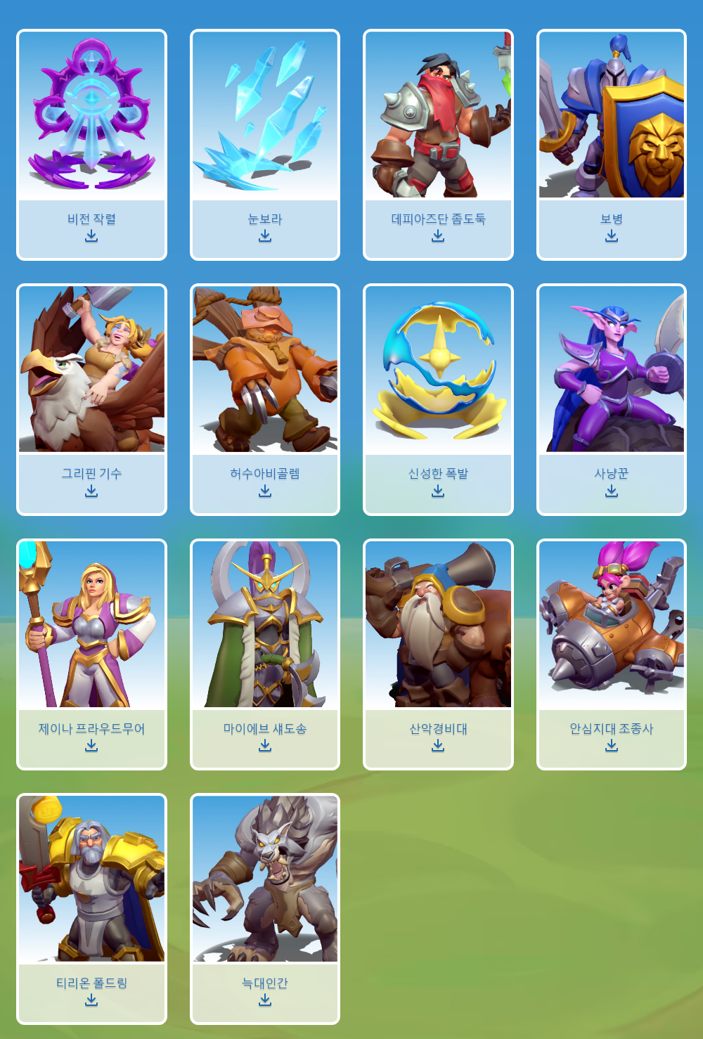 럼블은 워크래프틀 기반으로 하였기 때문에 굳이 이름을 보지 않아도 대부분 알수 있지만 아직 얻지 못한 케릭터도 많기 때문에 각 진영에 있는 케릭터를 전체적으로 확인해보도록 하겠습니다.
