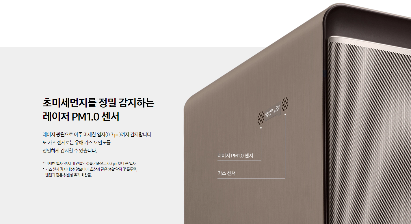 공기청정기에 또하나 중요한기능인 미세먼지 와 가스 감지 센서인데, 레이저 광원으로 아주 미세한 먼지와 각종 생활 가스를 정밀하게 감지해준다고합니다.