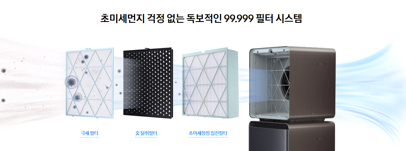 공기청정기에 가장 중요한 기능은 미세먼저 필터 기능이겠죠?