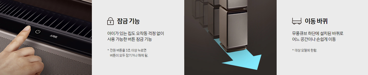 그리고 아이가 만져서 오작동을 하지 않게끔 장금 기능과 공기청정기 밑에 바퀴가 달려있어 자유롭게 이동이 가능합니다. 별거 아닌 기능인거 같지만 이런 사소한 기능이 구매할때 매우 중요하게 고려 할점이 되기도합니다.