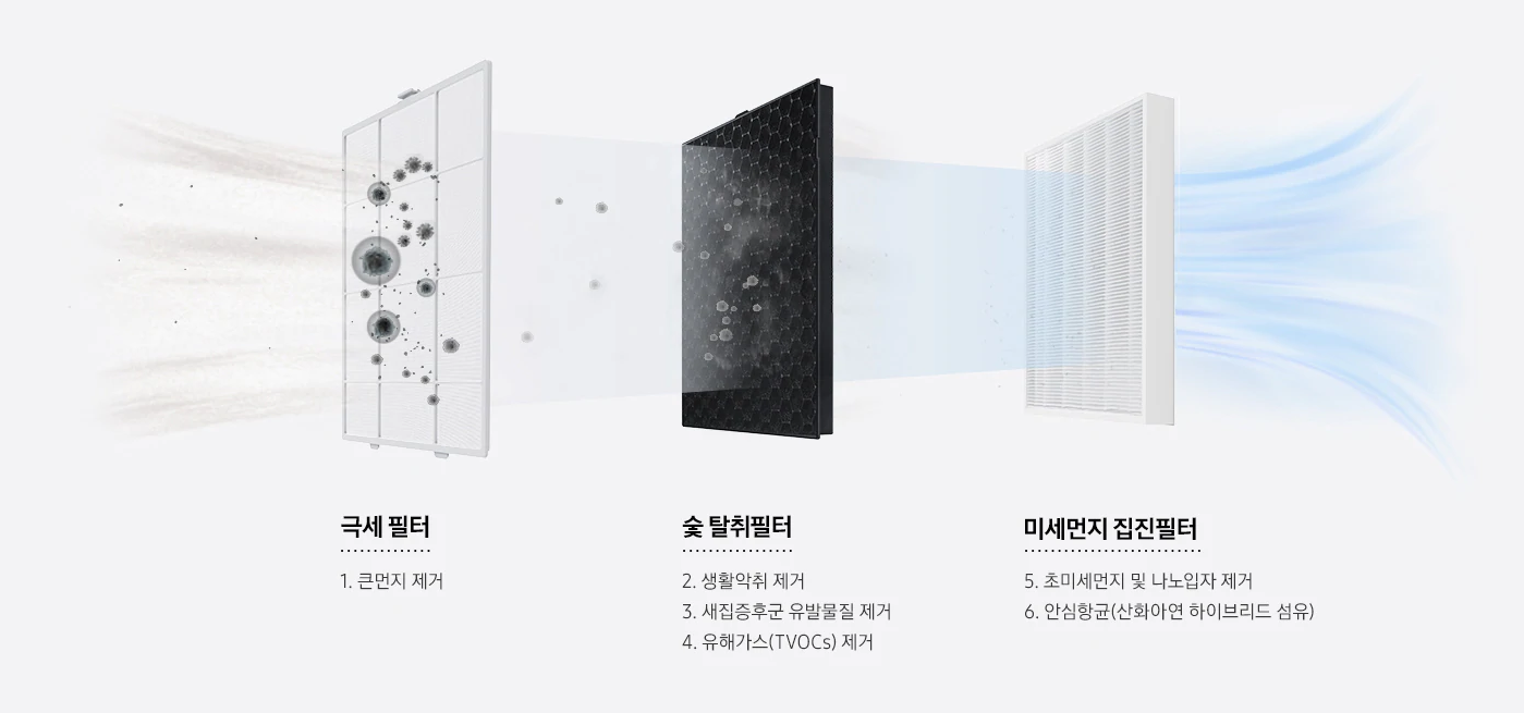거기에 기능을 더해 숯 탈취필터를 통해 각종 생활 악취나 유해가스도 잡아준다고 합니다.