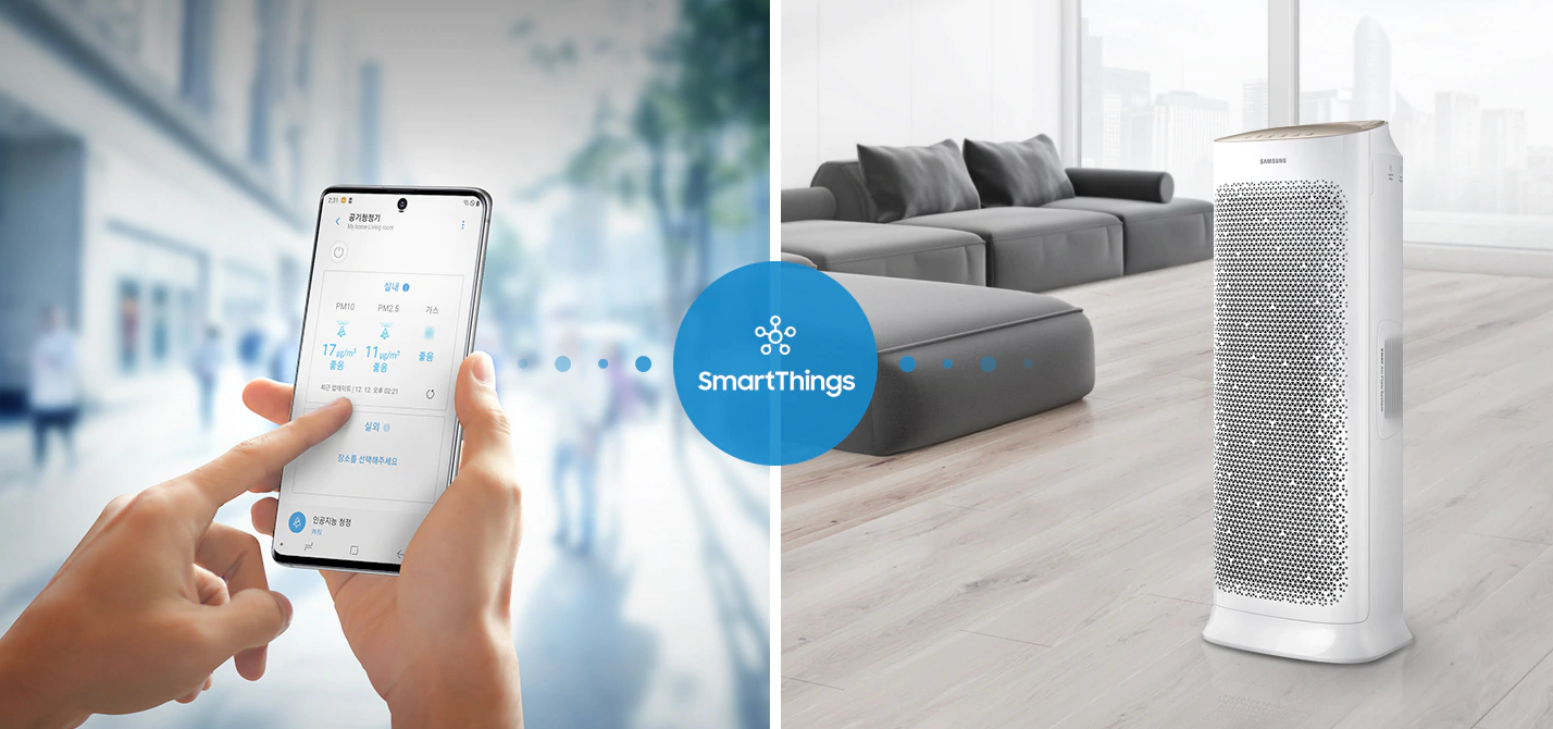 연동해서 블루 스카이 AX90T7020WFD의 온/오프가 가능하며, 필터 교체시기 나 실내 공기컨디션을 스마트폰으로 확인할수 있습니다