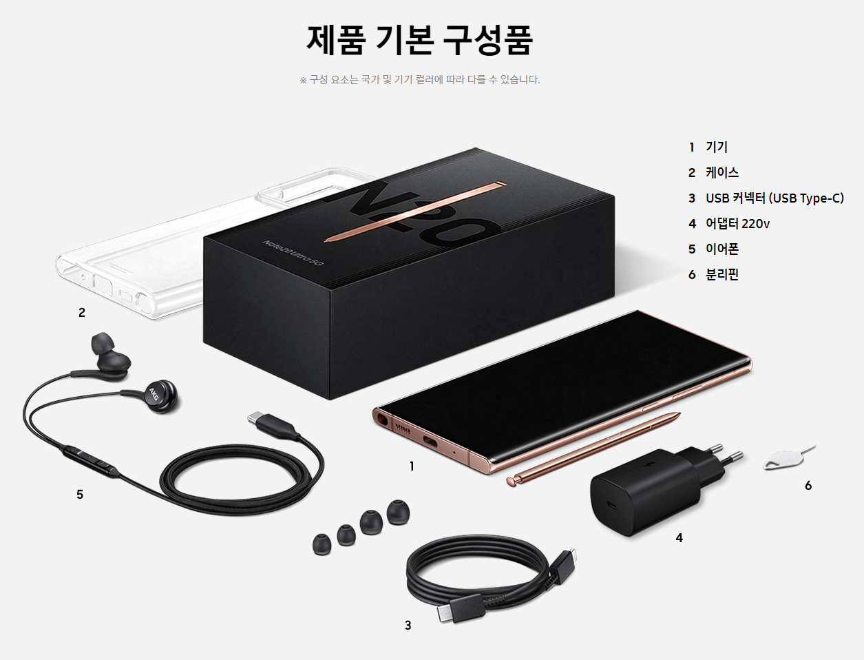 삼전전자 갤럭시 노트20 Galaxy Note20 5G 구매하시면 제품에 기본 구성품들입니다.