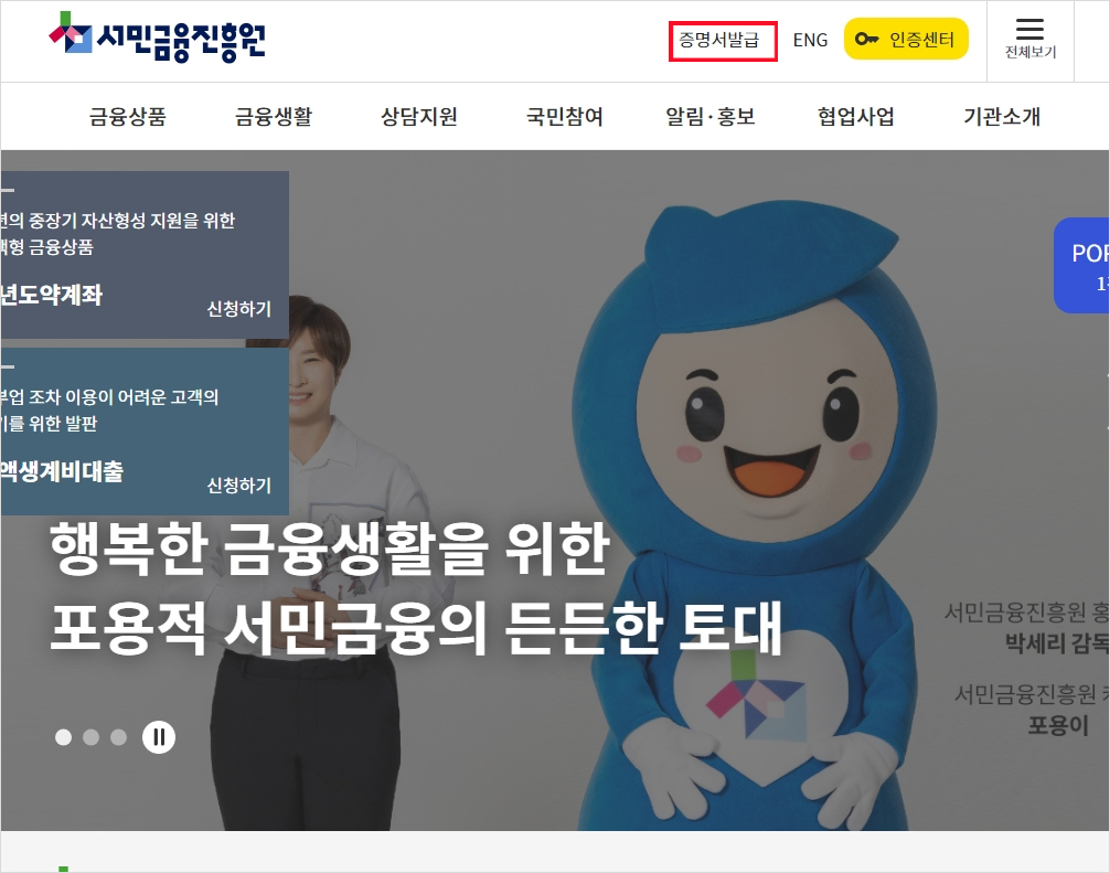 서민금융진흥원 증명서 발급 방법