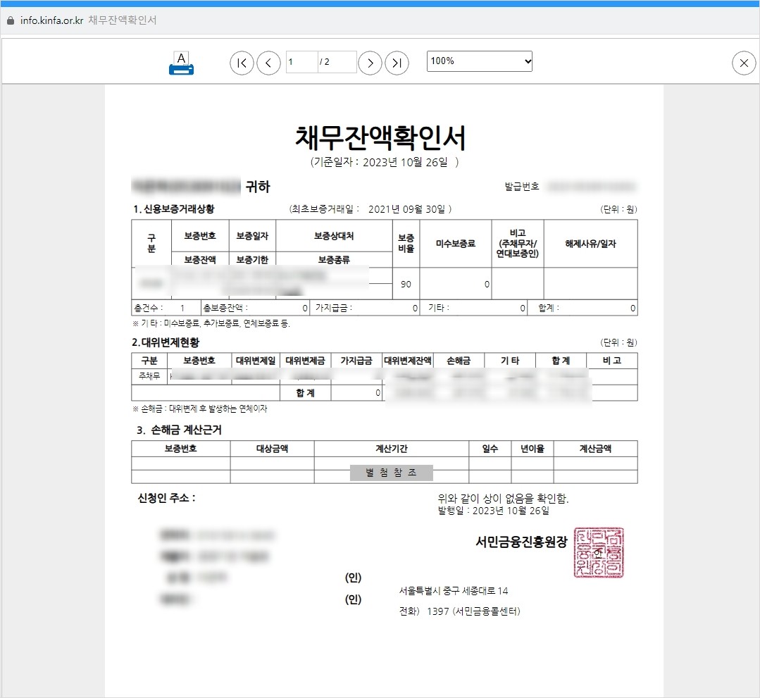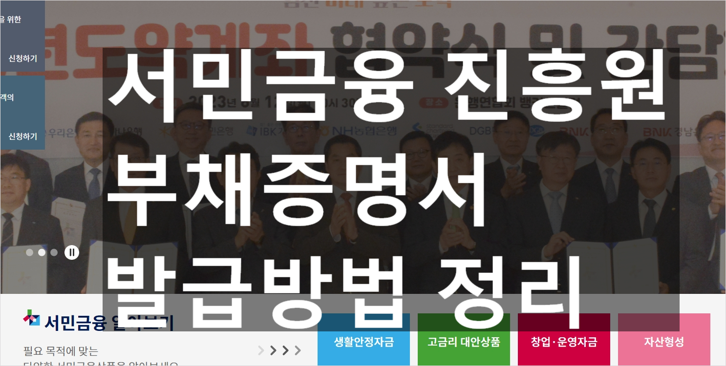 서민금융진흥원 부채증명서 발급하는 방법에 대해서 정리해보겠습니다. 은행에서 돈을 빌릴때 서민금융진흥원에 보증이 되어 있는경우가 있는데 경우에 따라서 서민금융진흥원에서 보증 실현으로 채권이 넘어오는경우가 있는데 이때 은행을 갈필요 없이 인터넷으로 쉽게 확인하는 방법을 정리해보겠습니다.