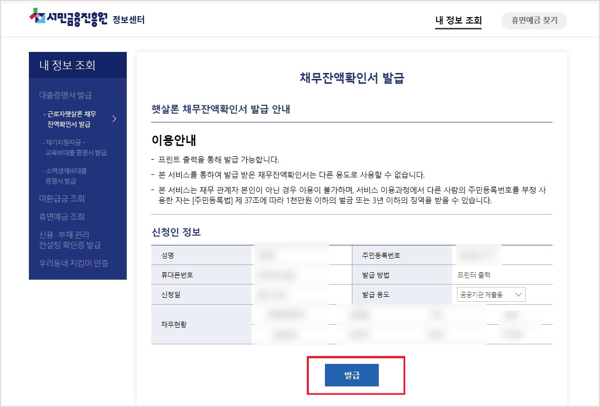 5. 채무잔액확인서 발급