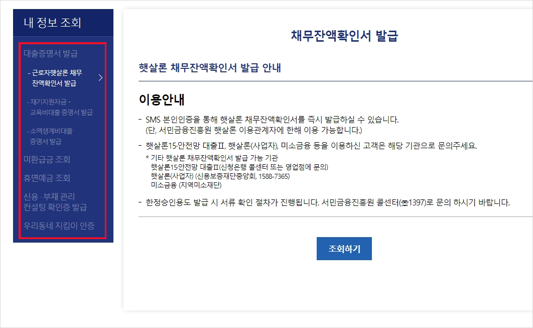 서민금융진흥원 증명서 발급 방법