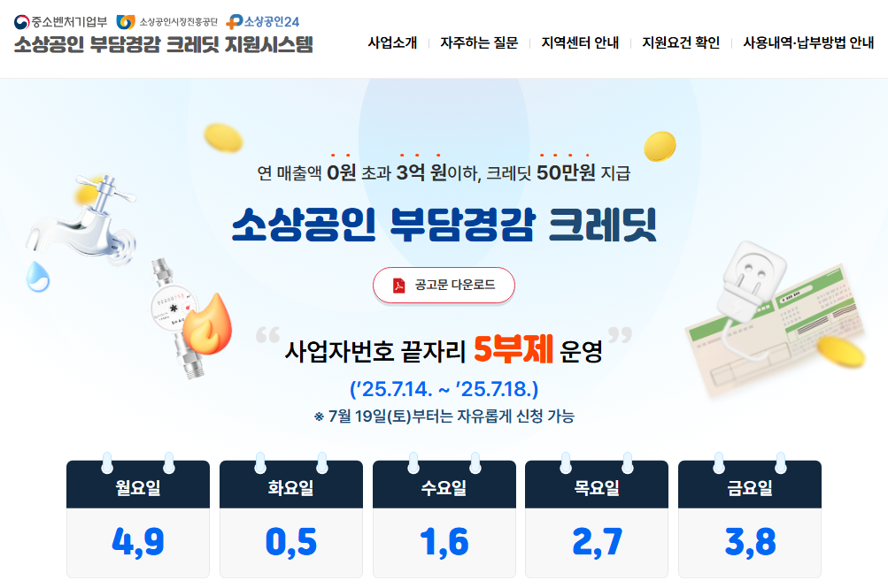 | 크레딧 한도 | 소상공인 1인당 최대 50만원 |
