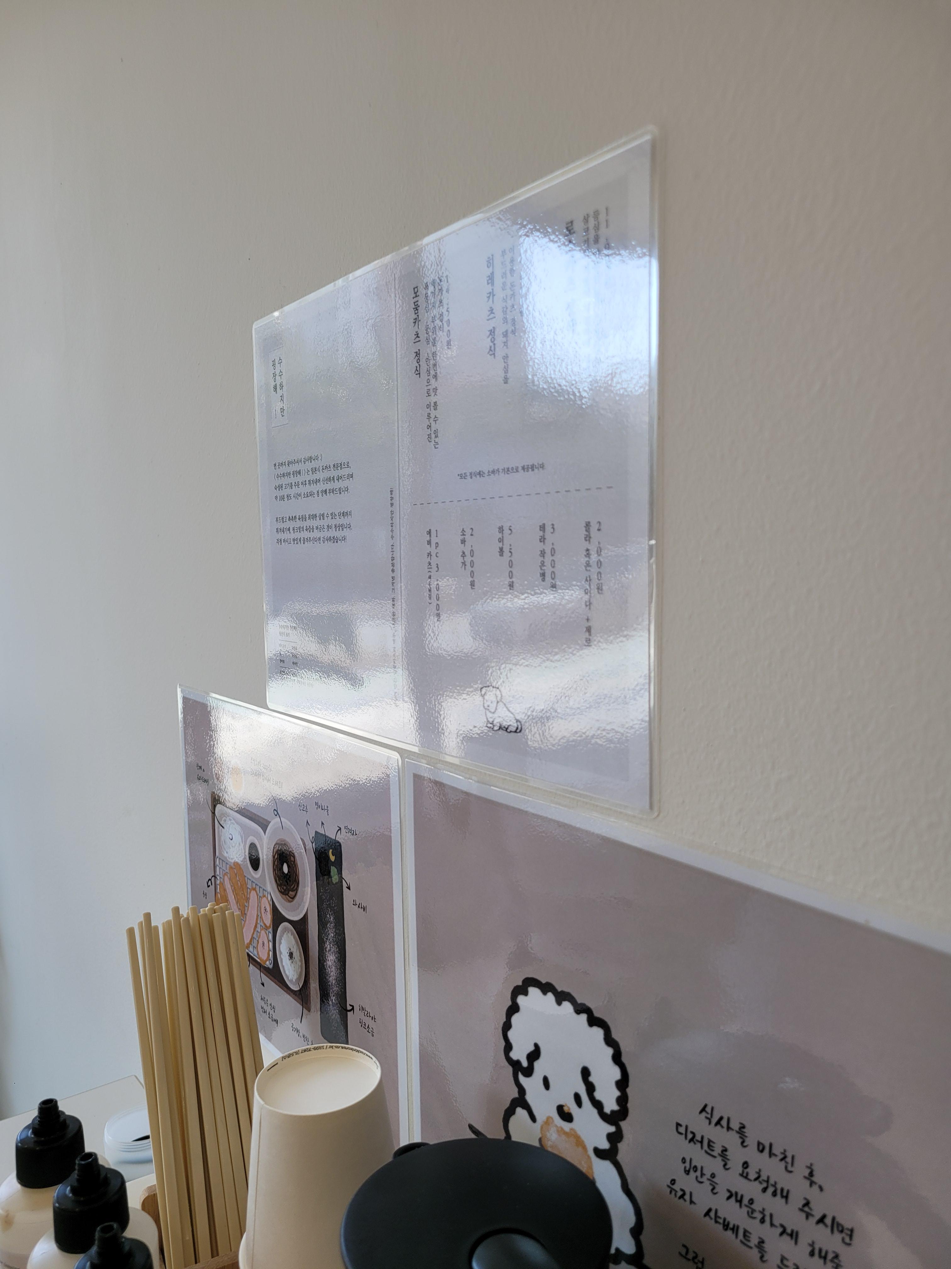 처음에 지나갈때는 머하는집인지 몰랐습니다. 간판도 없고, 강아지만 한마리만 그려져 있어서 음식에 정체를 알수 없었습니다. 옆에 빵집 들렸다가 배고파서 갔는데 돈까스 집이 였네요