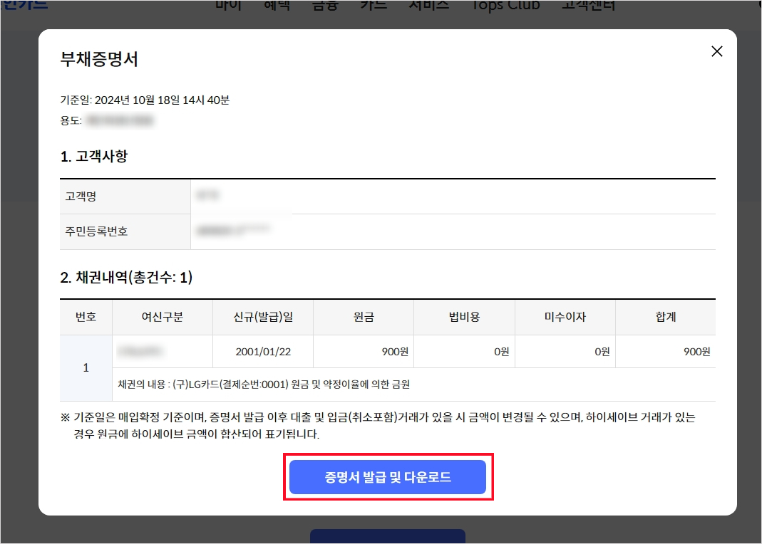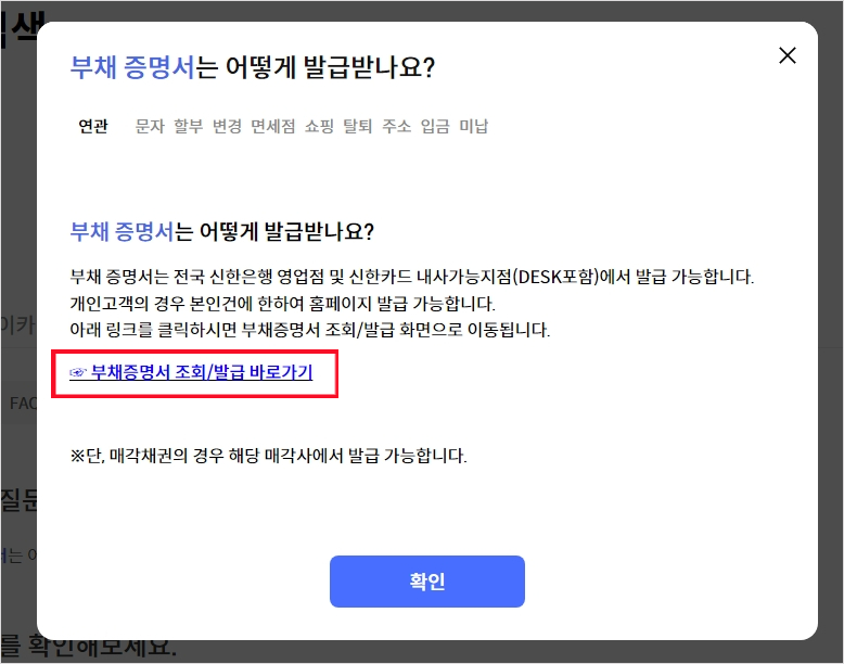 신한카드 부채증명서(금융거래잔액확인서) 발급방법