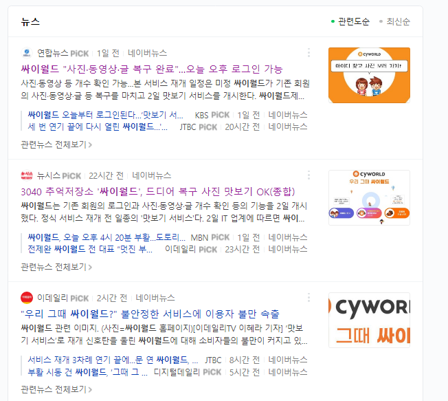 8월2일에 싸이월드 맛보기 서비스가 시작이 된다고 해서 기사를 찾아봤습니다.