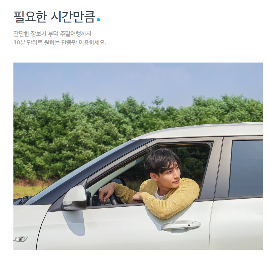 오랜 시간 차를 빌리기에는 부담스럽고 그렇다고 차가 없으면 불편한 상황에서는 아주 유용한 차량 공유 플랫폼입니다