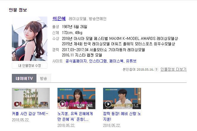 그리고 아내는 유명한 레이싱 모델 이은혜 잘몰랐지만, 아주 유명한 분이시더라구요!!