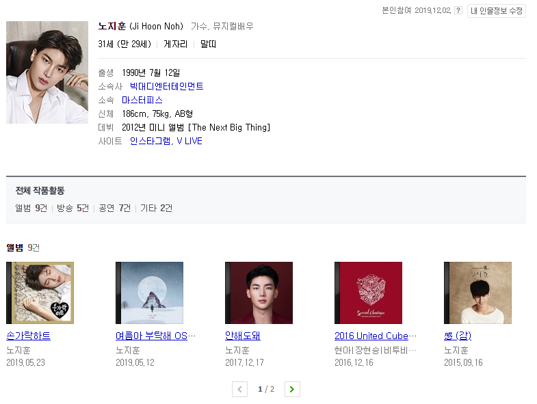 검색 해보니 노지훈은 뮤지컬배우 및 가수로 활동했다고 하네요