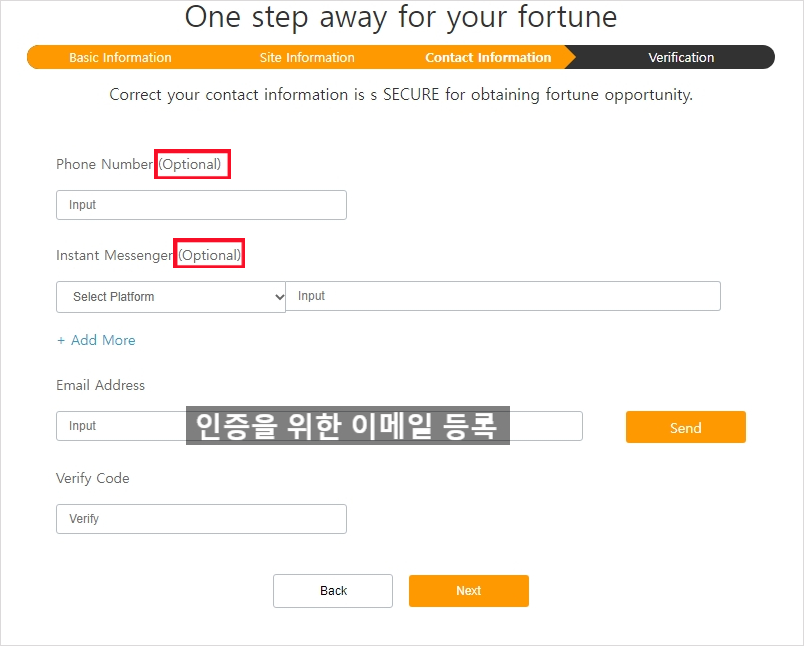 그럼 홍보 사이트에 대한 정보 입력하는 칸이나옵니다.