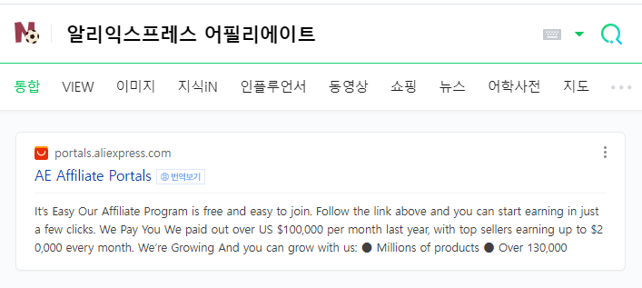 먼저 인터넷 포탈에서 알리익스프레스 어필리에이트를 검색합니다.