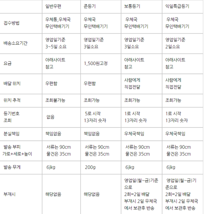 하지만 장점이 많은 만큼 인력이 들어가기 때문에 비용도 비싸고, 수취인이 못받을경우에는 관할 우체국에 가서 집접 수령해야되는 번거러운 점이 있습니다. 귀찮다고 안받을경우에는 우편물이 반송되며 이로 인한 비용은 보낸 사람이 다 부담해야되죠요
