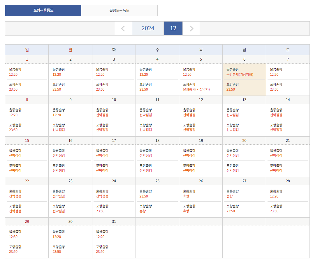 • 울릉여객터미널 영업시간 : 08:00-16:00