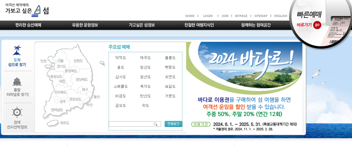 1) 가보고 싶은 섬 홈페이지 또는 울릉쿠르즈 사이트 방문
