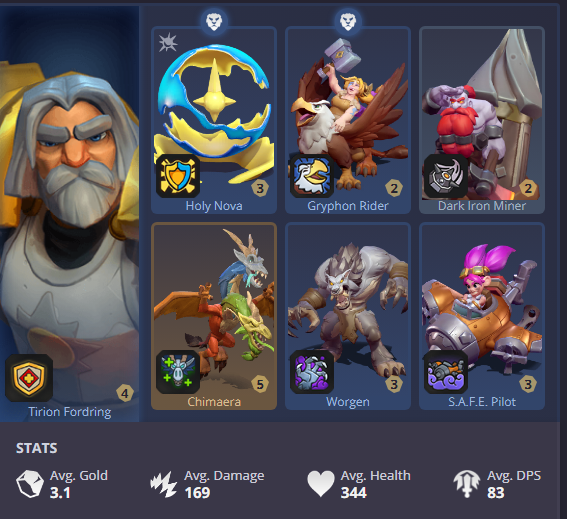 - 아직 키메라를 이용한 덱이 많지 않아서 그중에 하나를 가져왔습니다. 이번에는 맵이 가는 길이 좁기 때문에 뭉쳐있을 때 보내는 용도로 안심지대 조종서가 꼭 필요하고 가운데 금광을 편하게 먹기 위해서 검은 무쇠 광부 그리고 탱킹 능력이 좋은 티리온 폴드링과 키메라특성에 회복을 주고 신성노바를 통해 힐을 주면서 밀고 나가는 덱입니다. 원소 피해는 그리핀으로 주면 되고, 늑대인간은 은신 상태이기 때문에 지나가면서 강한 딜을 줄소 있습니다. 평균 코스트는 3.1로 좋네요