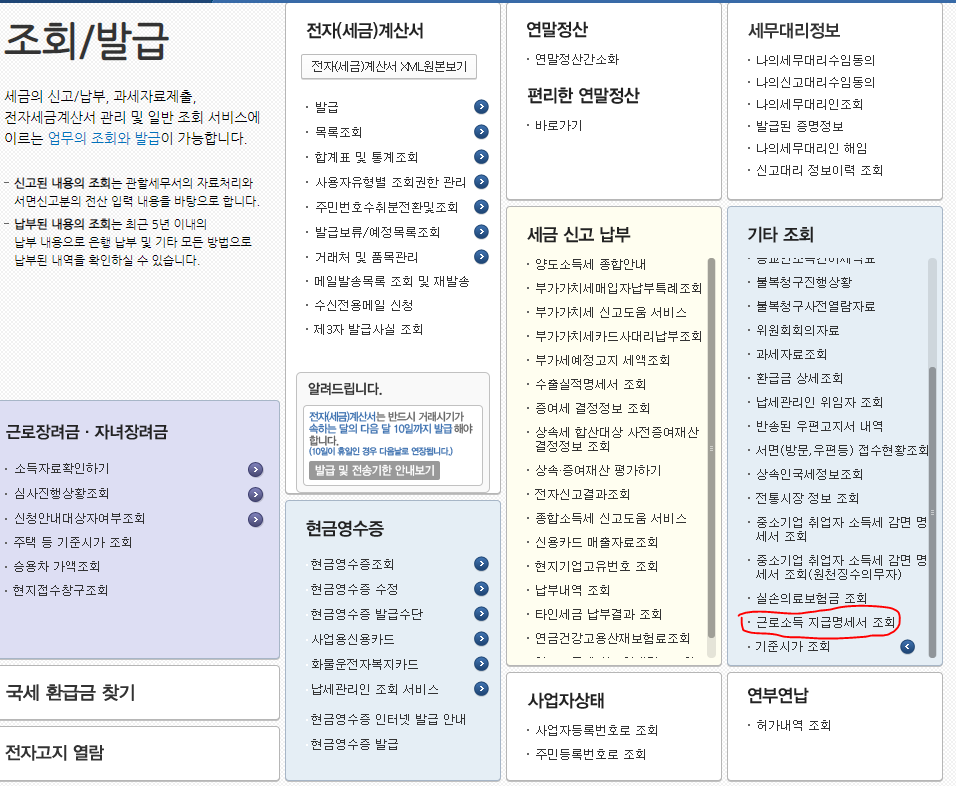 원천징수영수증 발급 말고도 다양한 업무를 볼수 있습니다.