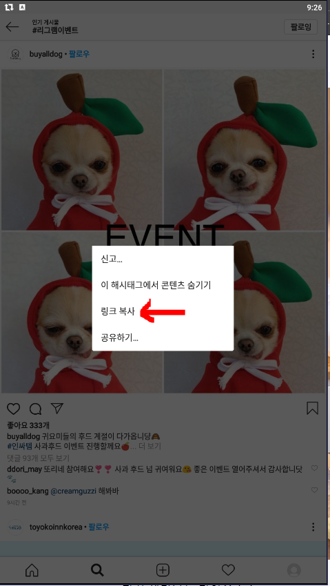 여러가지 인기 게시물이 나오는데 개귀요미가 눈에 뛰기 때문에 저걸로 진행 해보겠습니다.