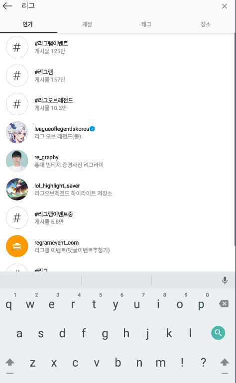 저는 리그램 이벤트에 참여하기 위해 "리그램이벤트"를 검색합니다.