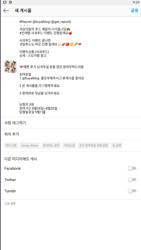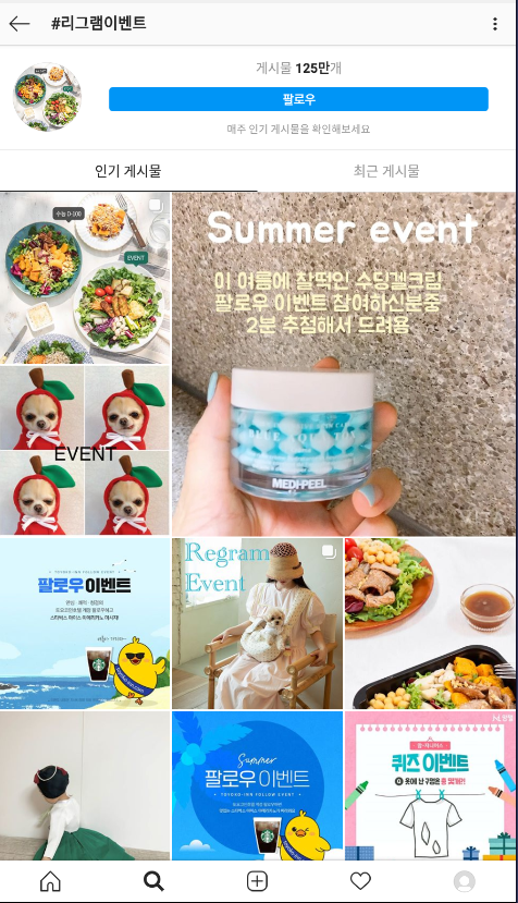 요즘에는 리그램 이벤트도 많이 하기 때문에 해시태그에 "리그램"을 달아서 많이들 이벤트를 하시죠!!