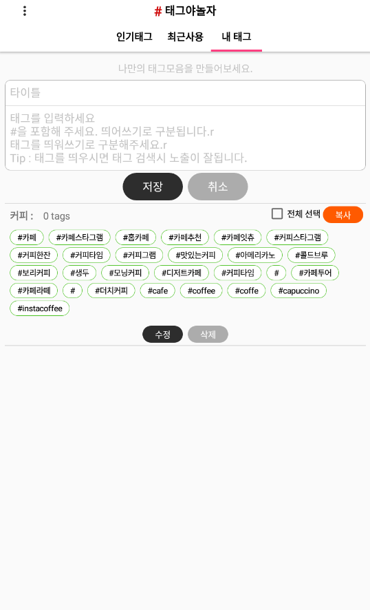 "내 태그"를 터치하시면 태그 모음에 대한 제목을 만들수 있습니다.