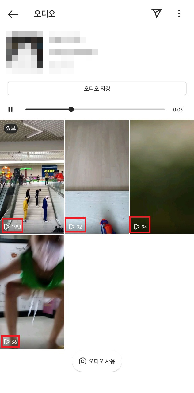 3. 계정에 올라가 있는 모든 릴스영상을 확인할수 있고, 각 영상 왼쪽하단에 조회수를 확인할수 있습니다.