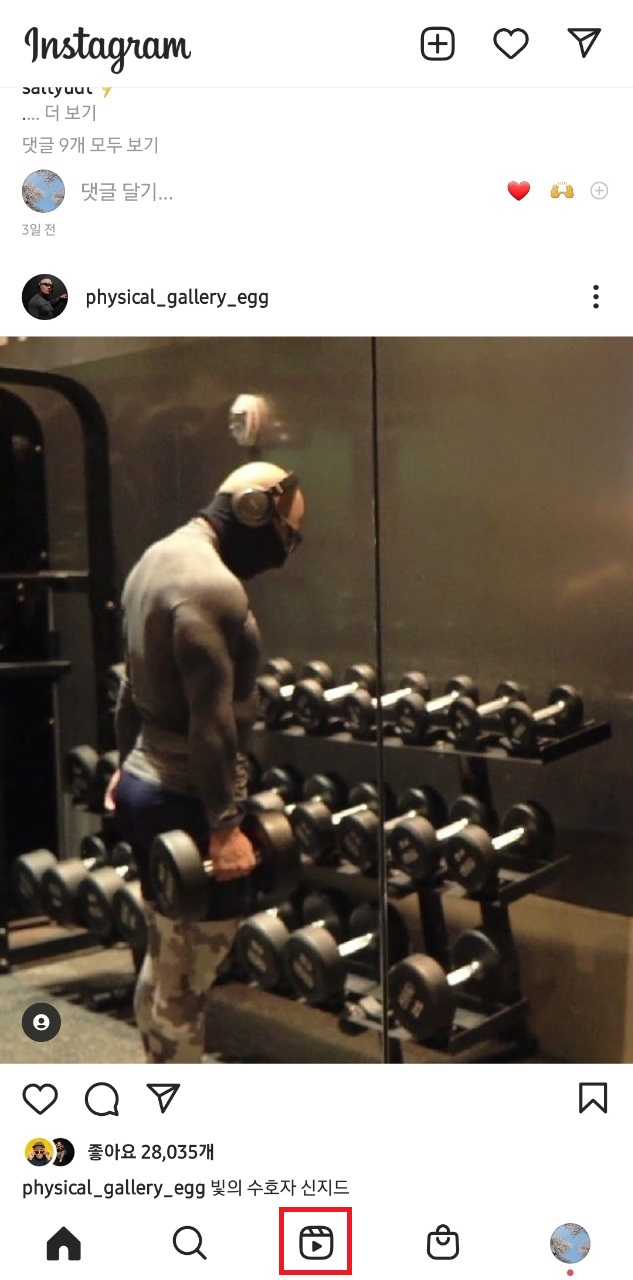 인스타 맨 하단에 가운데 영상 플레이 버튼이 있는데 다들 아시다 시피 릴스 영상을 볼수 있는 버튼입니다.