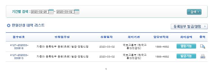 웹에서 그냥 열람 할수도 있고, 자동차 등록원부를 인쇄도 가능합니다