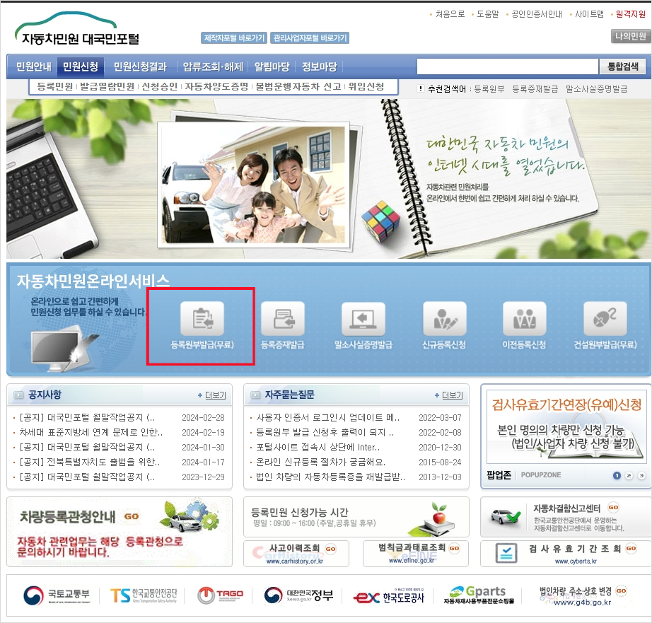 먼저 "자동차민원 대국민포털"을 찾아서 들어가야합니다. 찾기 힘드신 분들 위해서 바로가기 클릭하시면됩니다.