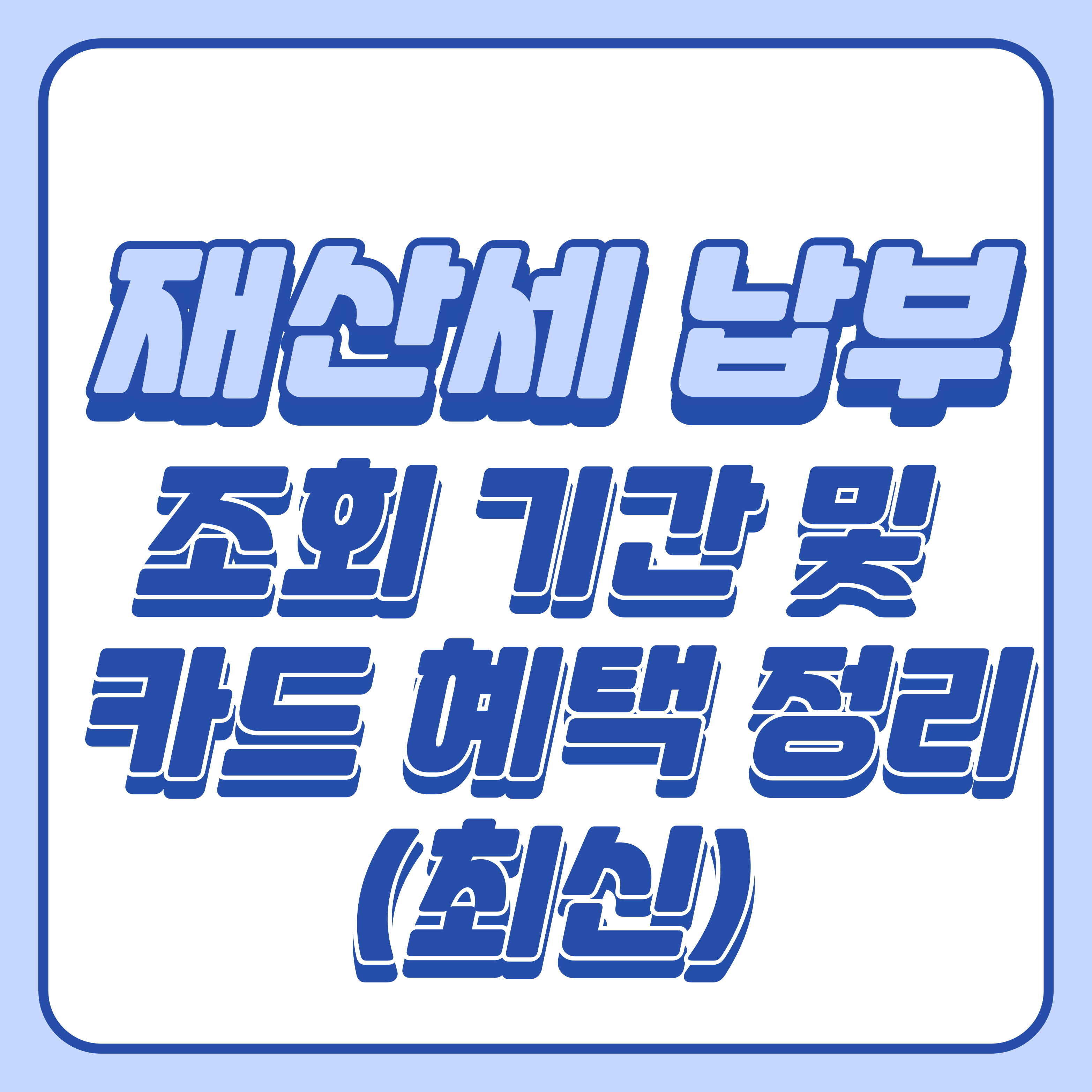 | 기타 카드사 | 포인트 이용 납부, 2~12개월 무이자 할부 이벤트 다수 | 각사 이벤트 공지 필수 체크 |